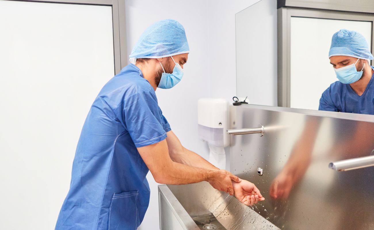 Il lavaggio chirurgico delle mani è una procedura specifica che viene eseguita prima di un intervento chirurgico invasivo. Ha lo scopo di eliminare la flora transitoria, ridurre quella residente e inibire la crescita dei batteri sotto i guanti.